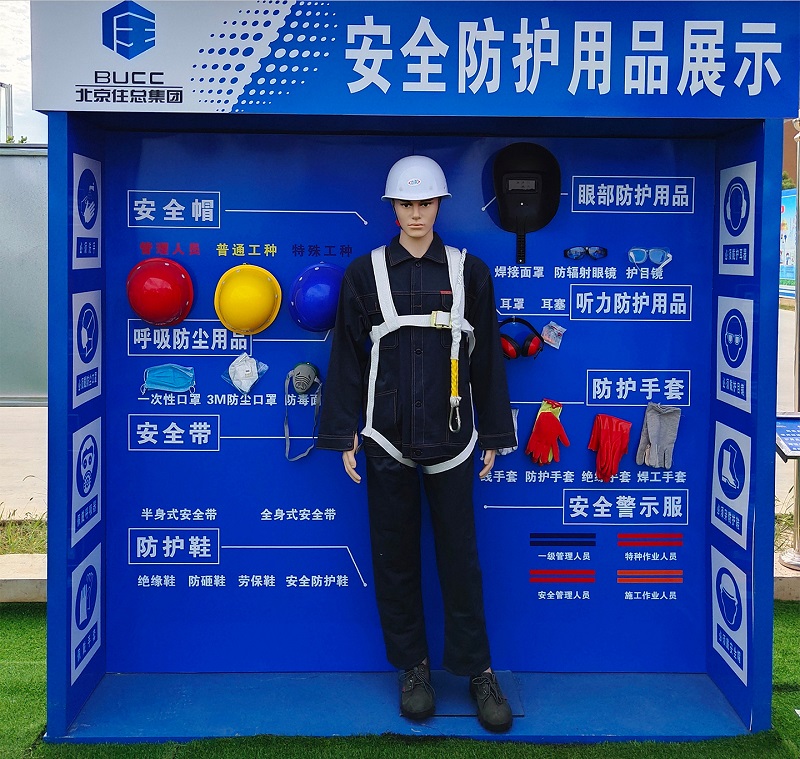 1、防護用品及著裝展示包含各類防護用品,一般尺寸為1000*1000*1000mm和1000*1000*2000mm,可根據現場實際尺寸調節。